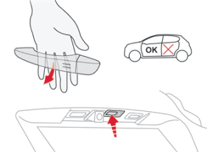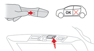 Elinizi ön kapılardan birinin kolunun arkasından geçiriniz ya da bagaj kapısı açma kumandasına basınız. Motorlu bagaj kapısı açma kumandası etkinleştirildiğinde, bu eylem otomatik açma işlevini tetikler. | Ön kapılardan birinin koluna (işaretlerden) ya da bagaj kapısındaki kilitleme kontrolüne basınız. Elektronik anahtarlardan biri aracın içinde bırakıldıysa aracı kilitlemek mümkün değildir. |